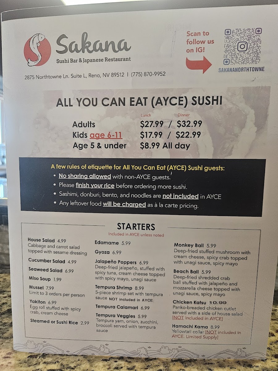 Sakana Sushi - NV 89512 Menu